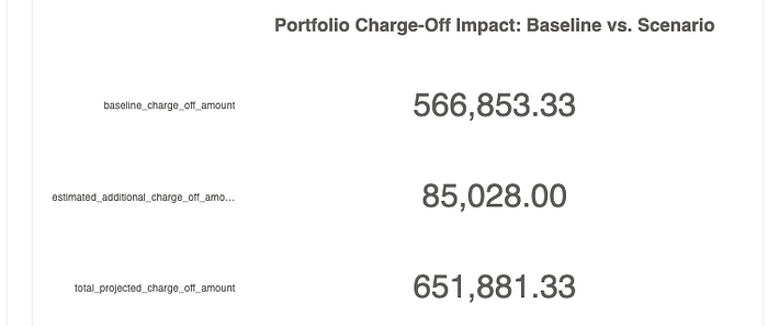 Estimate the portfolio charge-off impact if borrowers with credit score under 620 had a 15% higher default rate.